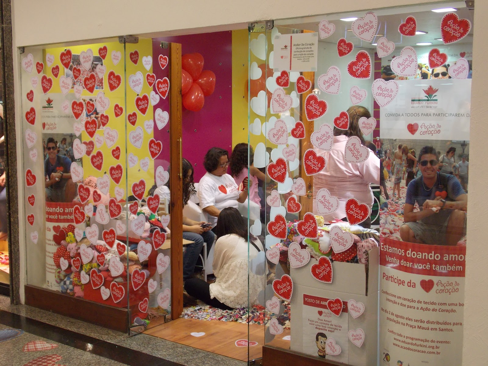 Um dos pontos de coleta e confecção dos corações está sendo o Miramar Shopping, onde eu e os amigos demos nossa mãozinha.