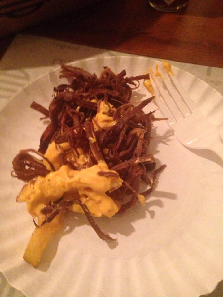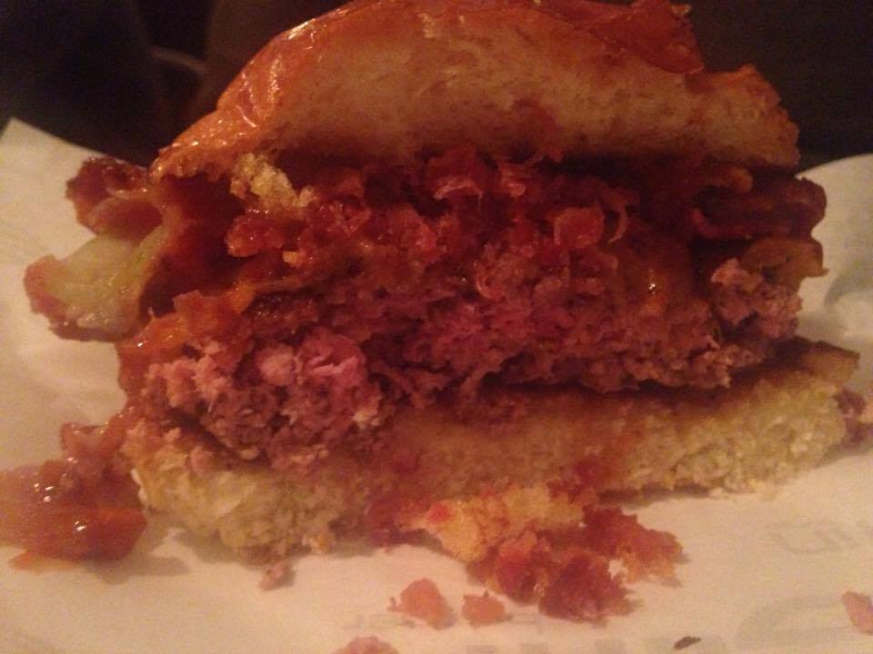 A entrada que provamos era uma porção de fritas com cheddar derretido e brisket desfiado ($25). as fritas estavam no ponto, o cheddar delicioso e o brisket da um gosto único ao prato. E o restaurante não maneira na hora de colocar os ingredientes, entregando uma porção extremamente bem servida. Para comer, eu experimentei o Brisket Sandwich ($38), Um delícioso lanche na ciabatta orgânica com recheio de brisket em fatias, muçarela, picles de cebola roxa e maionese dijon. Um grande diferencial do preparo dos lanches é que você sente o sabor de cada ingrediente, fazendo uma mistura maravilhosa como resultado final. O lanche é enorme, e serve muito bem. O Alvaro por sua vez experimentou o All In Burger ($36), carro chefe da casa, e a única receita que os donos já possuíam quando tiveram a idéia de abrir o estabelecimento. Um delicioso pão de brioche com hamburguer de angus 180g, cheddar inglês, bits de linguiça levemente apimentada, e o toque especial: Um anel de cebola enrolado em bacon no molho barbecue. Além de delicioso, o prato é visualmente lindo. O anel de cebola ao bacon da uma impressão de uma coroa no sanduiche, tornando a experiência visual muito legal. Um grande diferencial da casa é que os pães dos sanduiches são passados no maçarico, desta forma, eles não encharcam com os ingredientes e permitem que você segure seu lanche com facilidade e sem fazer sujeira.