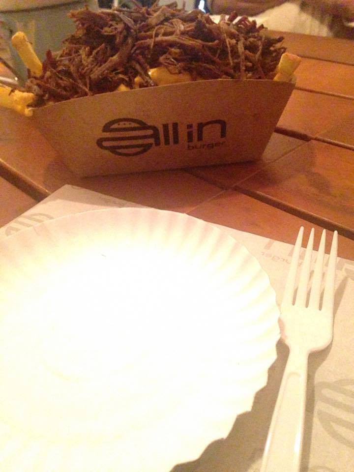 Sobre o que a casa oferece, podemos afirmar que é uma proposta inovadora. O fato de todos os hamburguers serem feitos na churrasqueira é um diferencial, que pouquíssimos estabelecimentos usam e que da um sabor especial para a carne. Os ingredientes usados pelo All-In são todos ou de fabricação própria ou modificados pela casa. Portanto, o gosto industrializado que sentimos muitas vezes quando comemos um sanduíche é inexistente na casa. Dentre as bebidas, destaque para o Chopp da Brooklyn Beer, uma cervejaria americana. Outro destaque é o Brisket. Aos fins de semana, são servidos três pratos com o famoso corte de Peito Bovino, que é defumado por 14 horas no forno a lenha antes de estar preparado para servir.