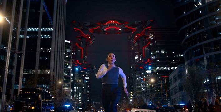 Foto de Jodie Turner-Smith como uma guerreira virtual de Tron