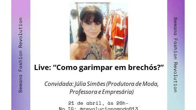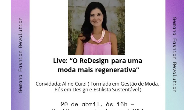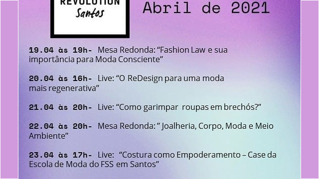 Para a programação completa, confira o site Semana Fashion Revolution e siga as redes para outras informações. Faça parte da revolução. Seja Curioso. Descubra. Faça algo!