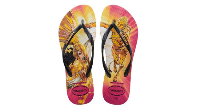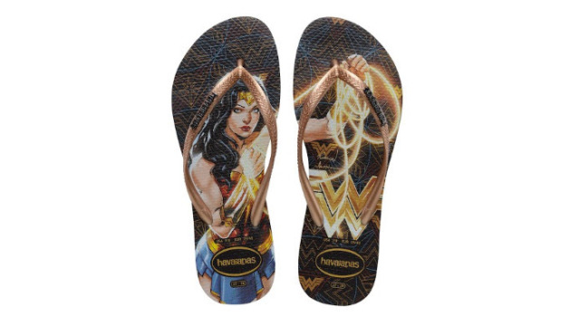 Uma das super heroínas mais amadas dos quadrinhos acaba de ganhar duas novas estampas no time #GirlPower de Havaianas. A guerreira mais destemida da história ilustra dois novos modelos exclusivos, disponíveis nas cores rosa com tiras pretas e logo pop-up metálico em dourado e o outro com sola escura, tiras douradas e logo pop-up metálico em preto.