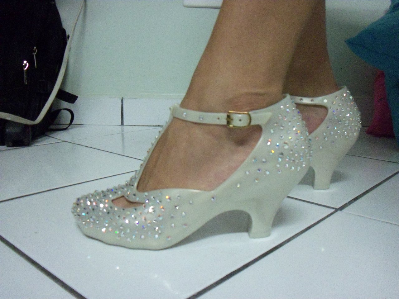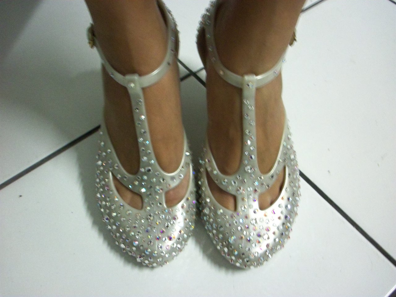 Da coleção “Viagens de Melissa”, o modelo Mary Jane é um dos mais cobiçados e difíceis de encontrar. Eu sempre achei o modelo lindo, mas nunca na minha numeração ou em um valor que fosse apropriado para o bolso. Até que graças aos grupos sobre Melissa que existem nas redes sociais, encontrei um perfil que fazia cristalizações, e resolvi dar uma olhada no trabalho que ofereciam. E na parte de vendas estava ela, a Mary Jane, em tom branco perolado. Conversei então com a dona do perfil e daí negociei a Melissa e pedi que ela fizesse para mim a cristalização. Eis abaixo o resultado.