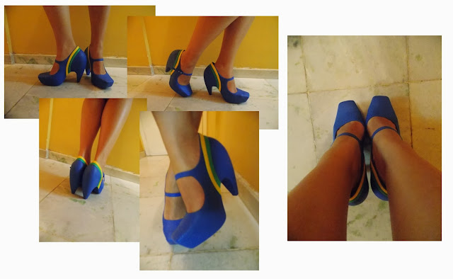Eu decidi usar minha Ginga com um vestido cor azul e apostei em um colar para incrementar. No caso se fizesse muito frio uma jaqueta branca para quebrar o “monocromático”. A Ginga azul me agradou muito por ser a mais diferente da coleção do Karl para a Melissa, e gostei desta singela homenagem ao Brasil com as cores da bandeira estampadas no sapato. Calças, vestidos, terninhos e muitas outras combinações podem ser feitas, levando em consideração que este é um modelo mais formal, então acho que é ideal para eventos corporativos, festas e comemorações. E aqui está o look: