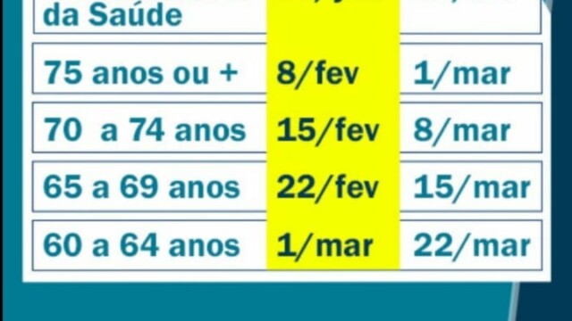 15/02 – Início da aplicação da primeira dose